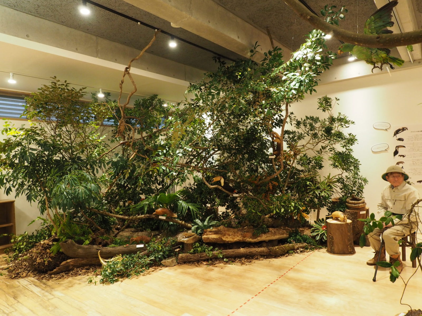 文化人類学者山口吉彦さんのアマゾンコレクション。ジャングルのような景色を作り、剥製や昆虫を展示しました。